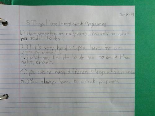 Petit retour très pertinent d’une petite fille de 7 ans sur la programmation : on ne pourrait pas mieux dire ! 1/ Les ordinateurs sont stupides : ils ne font que ce qu’on leur dit de faire ! 2/ Il faut être très précis concernant les instructions transmises 3/ Il faut lui dire de faire …